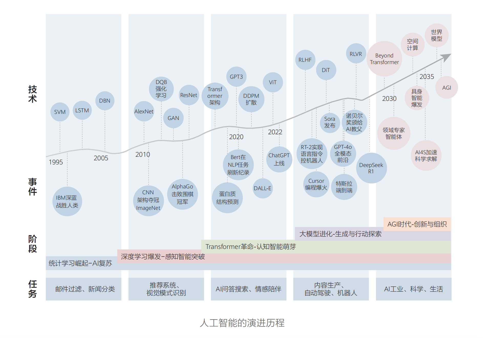 AI技术正经历从专用、感知型智能向通用、认知型智能(AGI)的关键跃迁。这一过程需要突破现有理论瓶颈,构建“三位一体”的协同架构,最终实现从“执行工具”到“决策伙伴”的转变。