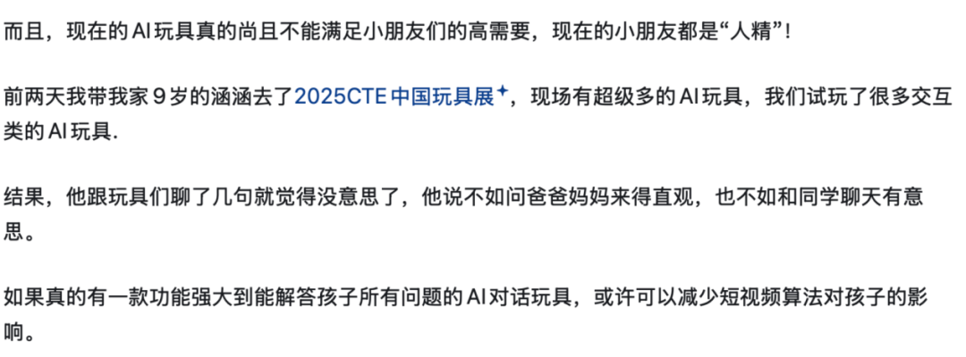 当前社交媒体上,针对AI玩具的吐槽远远多于赞美。