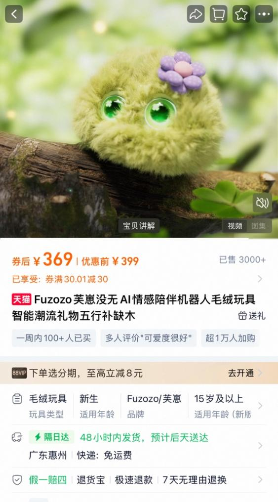 智能涌现曾援引多位行业相关人士的话,「目前在售的AI毛绒玩具,电商退货率在30%-40%左右。」