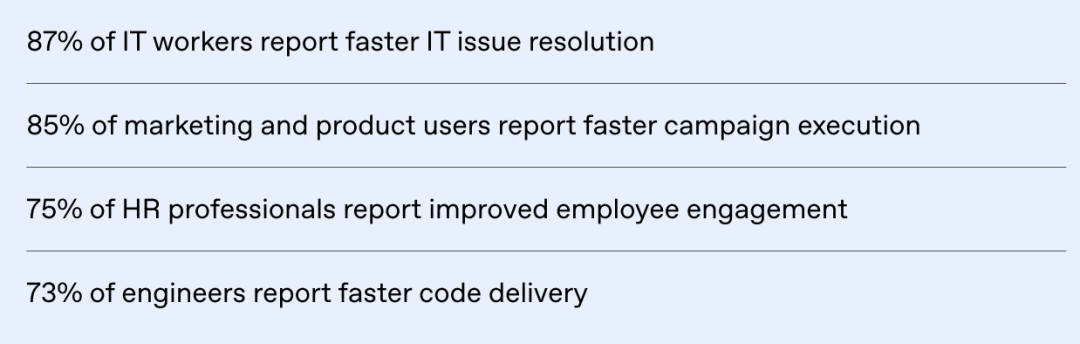 - ⏱️效率飞跃:员工利用AI工作每天平均节省40–60分钟;重度用户每周节省时间超过10小时。