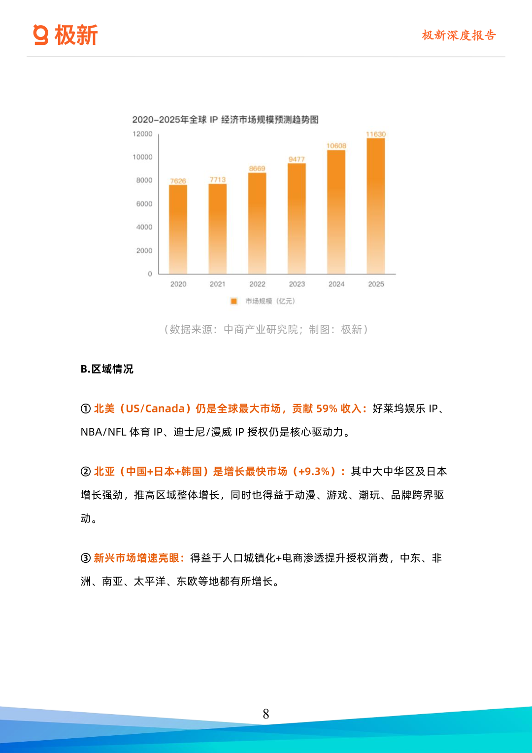 其中,北美市场凭借成熟的娱乐IP体系贡献了59% 的收入,而包括中国在内的北亚地区则以+9.3% 的增速成为全球增长最快的市场。