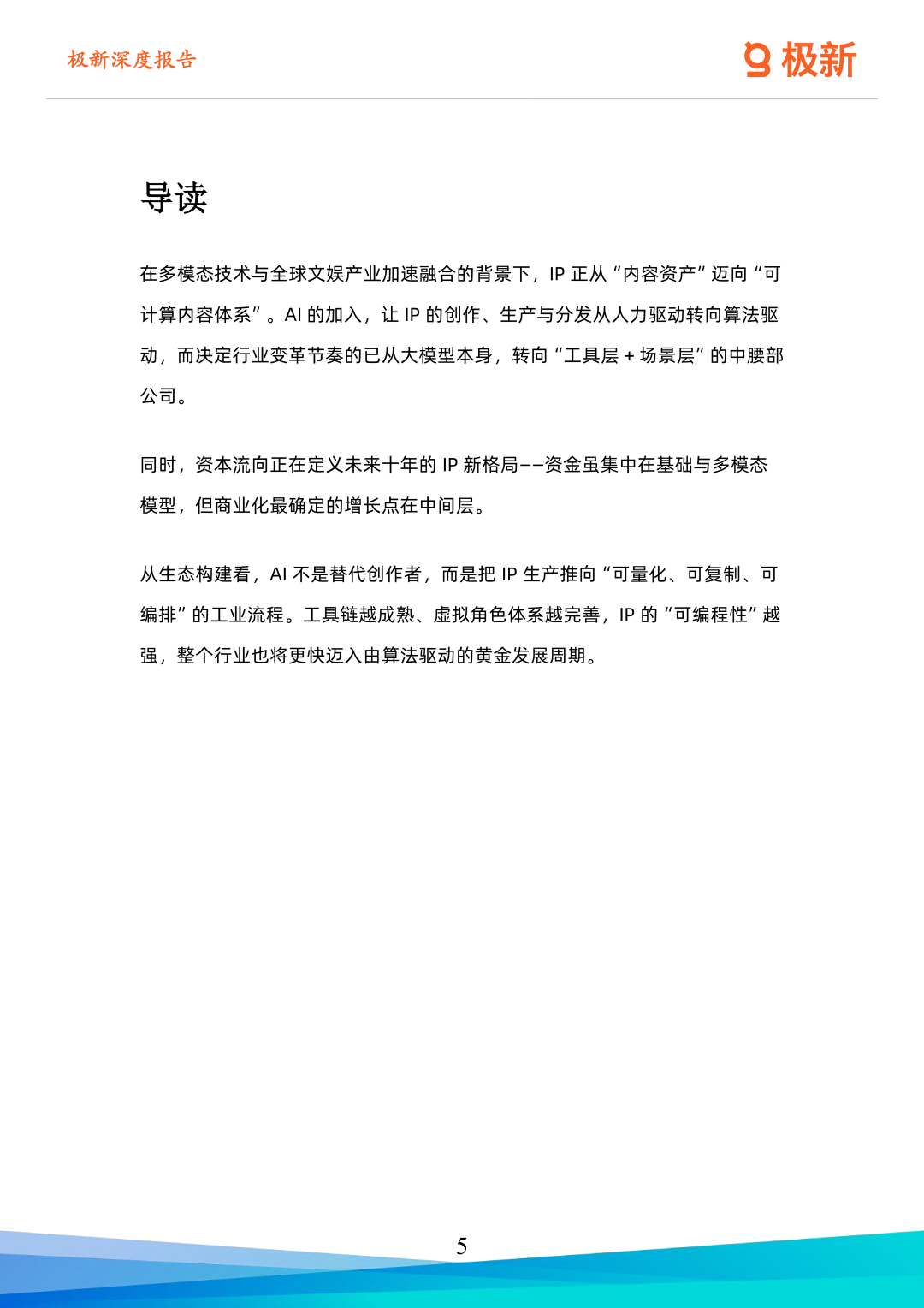 本报告深入洞察了这一趋势,并指出,AI的加入,让IP的创作、生产与分发从人力驱动转向算法驱动,行业变革的节奏关键已从大模型本身,转向 “工具层+场景层” 的中腰部公司。