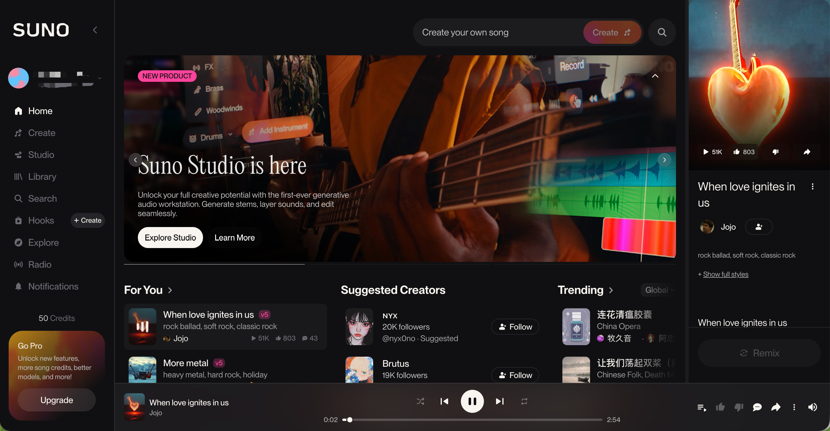 Ryden进一步透露:“现在我们的一些工作室用户,十几分钟就能出3首到5首不同风格的版本给到客户选择,完全能够做到‘上午接brief,下午交demo,晚上交成品’,这种效率在以前是完全不可想象的,他们现在订单已经接到不停。AI辅助还降低了从业人员的门槛,经营成本也降下来了。”