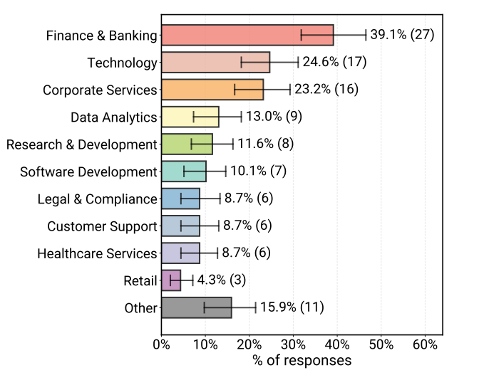 另一个重要的启示是,仅利用现有的前沿大模型和相对简单的提示工程技术,就足以在超过26个不同行业中创造出可观的、可量化的商业价值。