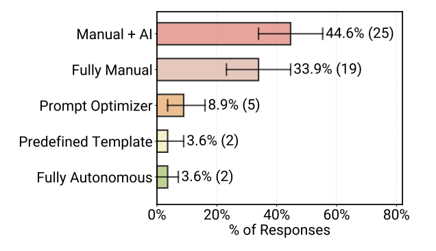78%的系统采用全手动或手动+AI 辅助的方式构建 Prompt 生产环境的。