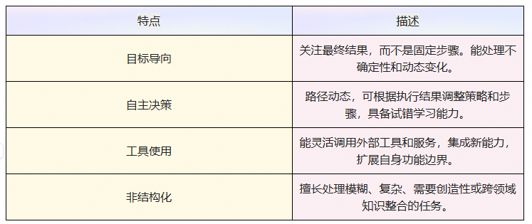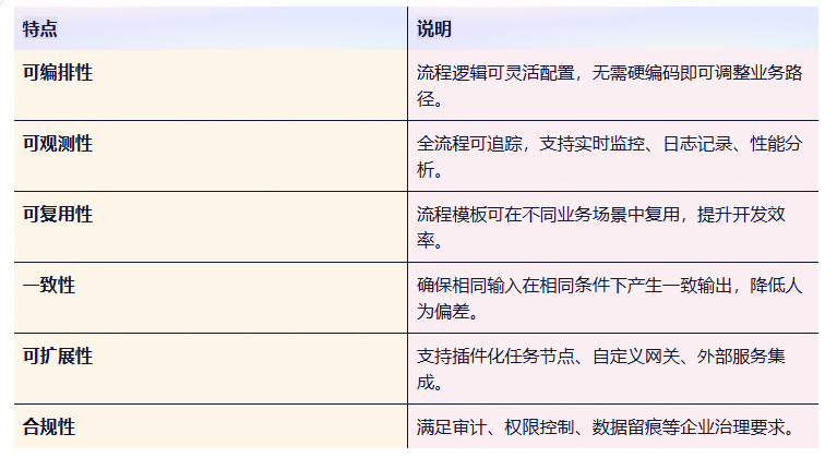 - Agent 注入了智能的灵魂,赋予了流程自主决策和处理非标任务的能力,它决定了**“做什么”和“为什么这么做”**。