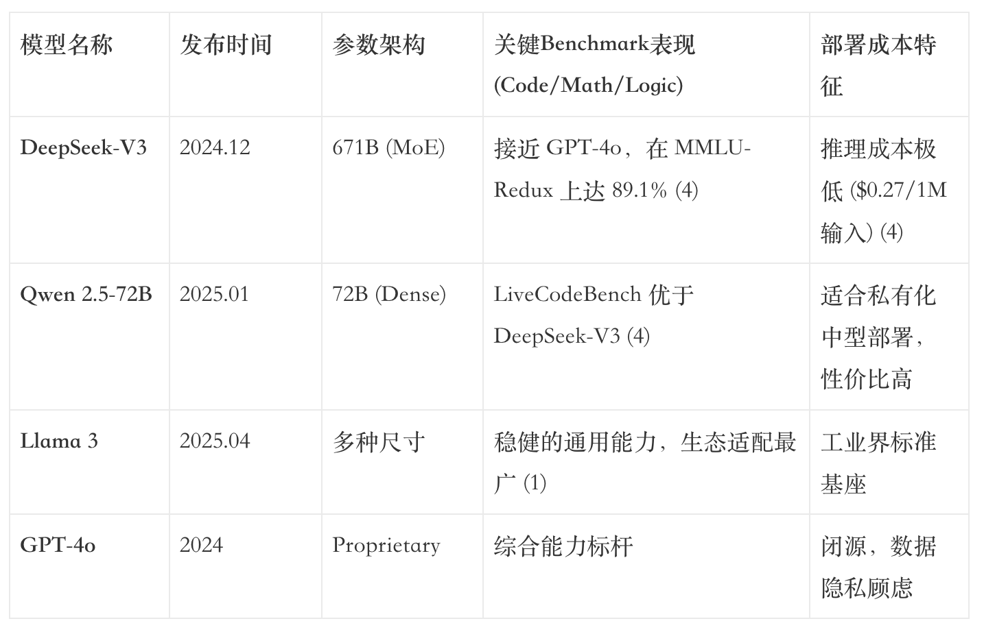 随着 DeepSeek-V3、Qwen 2.5-72B 以及 Llama 3 等开源模型在通用逻辑推理、代码生成及多语言处理能力上全面逼近甚至在特定指标上超越 GPT-4o (1),企业级 AI 的核心矛盾已发生根本性转移。通用的“智商”不再是稀缺资源,垂直场景下的“领域适配”与“业务逻辑对齐”成为了新的决胜高地。