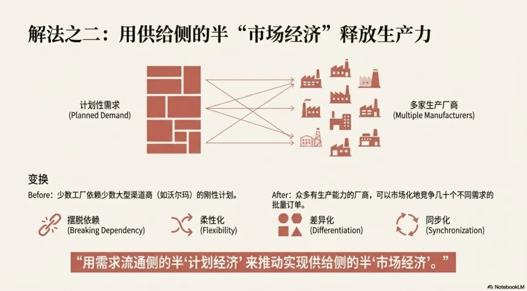从左边的“计划性需求”,到中间的“解耦”、“柔性化”,再到右边的“计划性需求”,路径画得清清楚楚。