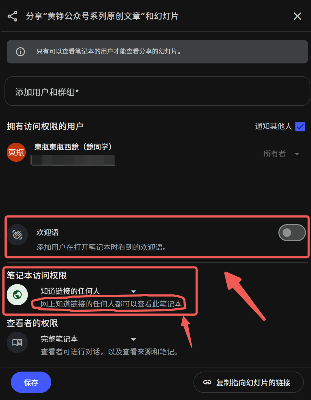 就像我这次生成的黄峥系列一样,咱们甚至该可以直接生成一个分享链接,设置为「网上知道链接的任何人都可以查看」。