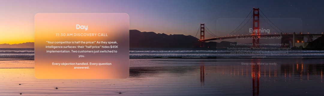 就像每台电脑都有操作系统一样,我相信每个专业人士很快都会有一个为其角色专门构建的 AI 原生操作系统。销售是这个转变的完美切入点。全球有 350 万 B2B 销售代表,这个市场足够大;销售工作流程定义明确且可重复,这让 AI 有用武之地;效率低下的问题显而易见,这创造了紧迫需求;而生产力提升带来的投资回报是立竿见影的,这让决策更容易。