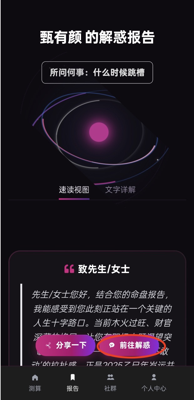 因为个人画像生成产品属于低频功能,用户只有使用少数次数的需求(多频的场景是给自己或者他人生成),而解惑答疑的需求,通常是高频的,因为用户可以询问“跳槽、财富、健康、情感等多种困惑问题”;