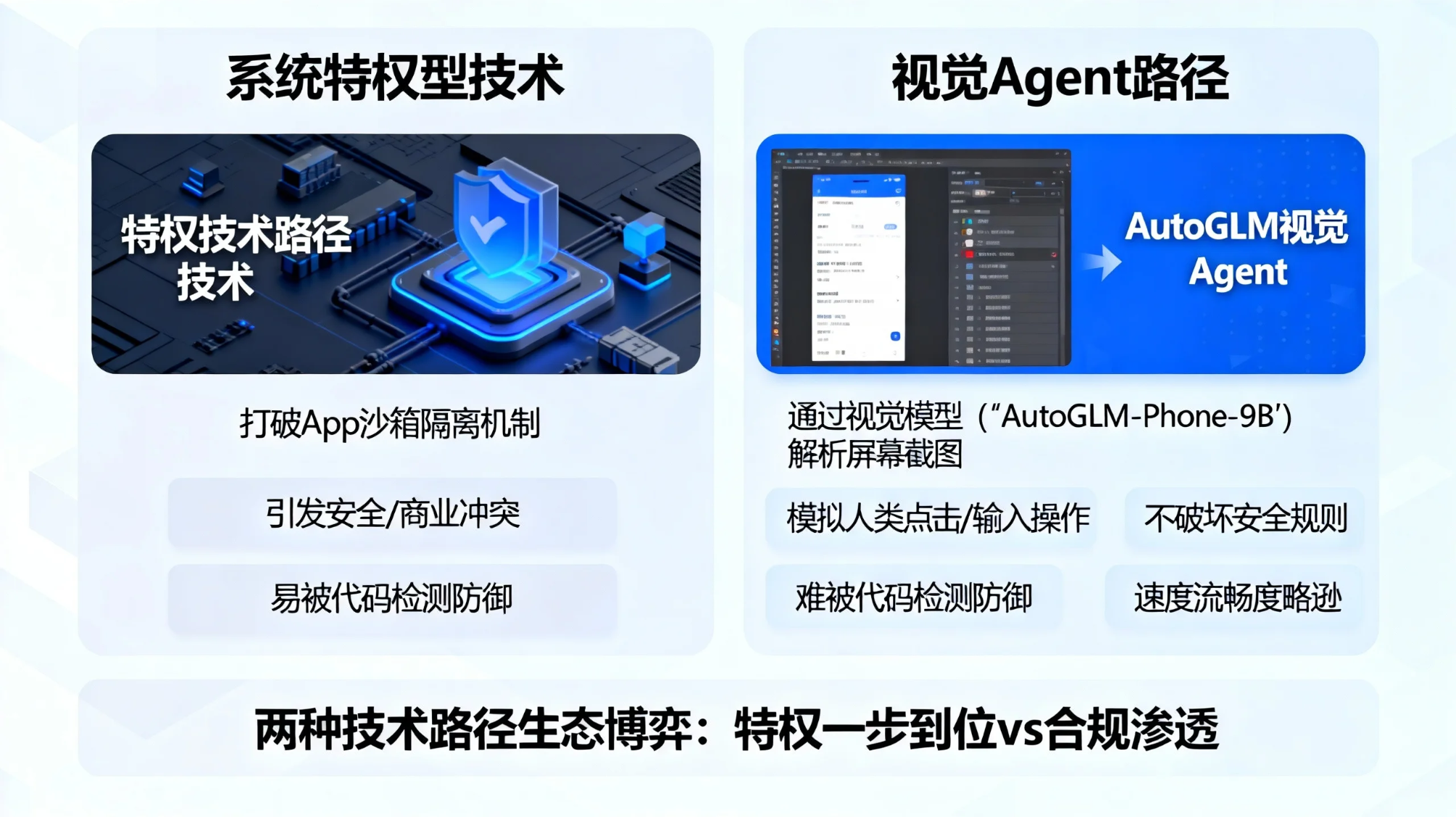 说到这里,就必须提一下实现“AI操作手机”的技术路径了,因为不同的路径,决定了冲突的激烈程度和未来的博弈方式。