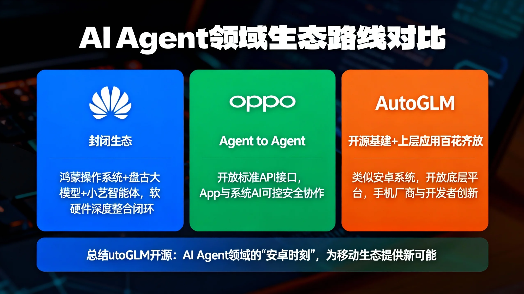 而AutoGLM的开源,则代表了第三条路,一条“开源基建 + 上层应用百花齐放”的道路。它有点像当年安卓系统的出现,提供了一个开放的底层平台,让无数手机厂商和开发者可以在上面进行创新,最终共同繁荣了整个生态。