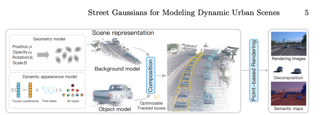 3D Gaussian自动驾驶场景重建,来自Street Gaussians https://arxiv.org/pdf/2401.01339