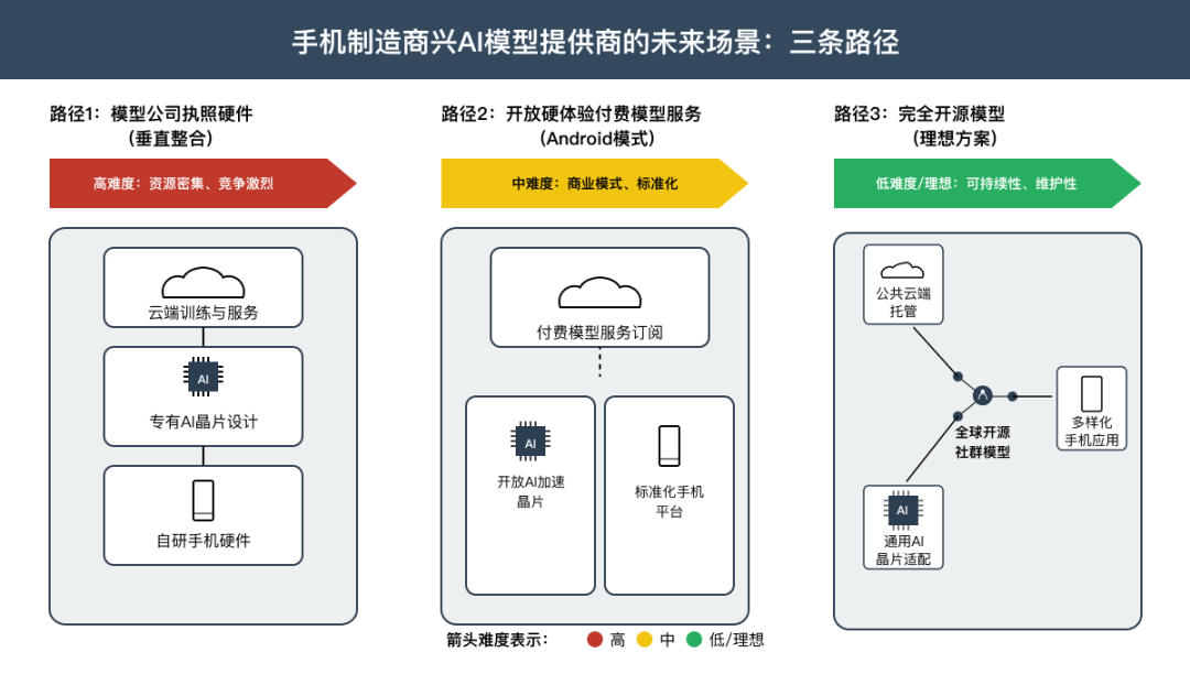 形态二:硬件开放,模型收费类似当年的Android模式,模型厂商提供标准化的AI能力,手机厂商使用并支付授权费。这是手机厂商可以接受的结果,虽然要交税,但至少用户还是自己的。