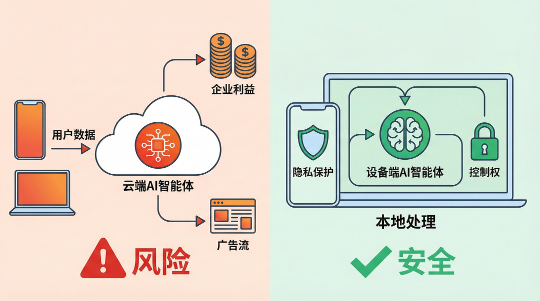 端侧Agent是什么?就是运行在你自己设备上、只为你服务、数据完全由你控制的AI助手。它不会把你的对话上传到云端,不会分析你的行为模式来给广告商,不会因为商业利益改变对你的建议。
