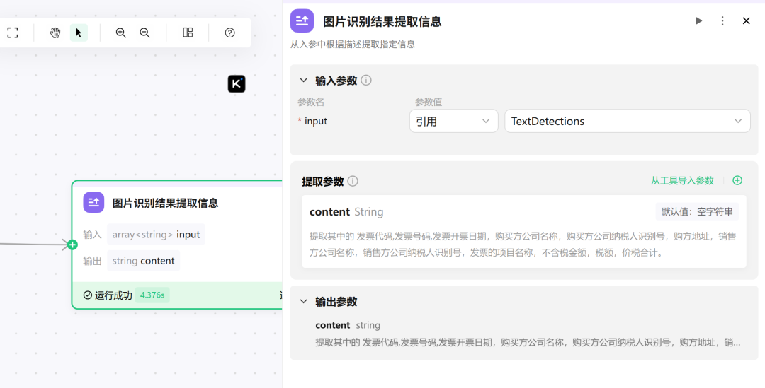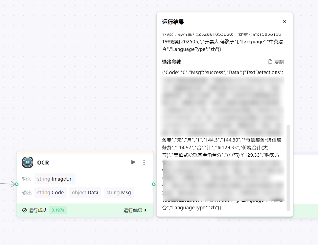 - 提取关键信息:提取OCR识别结果的“TextDetections”