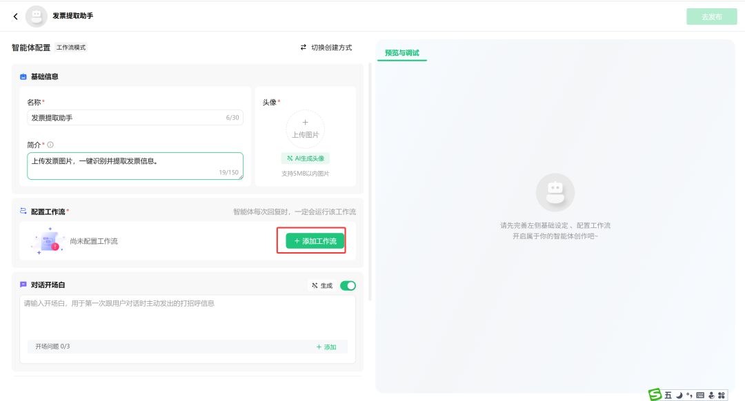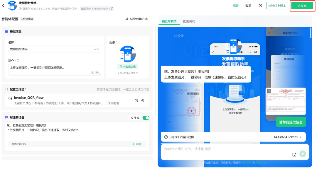 告别手动录入发票!元器智能体+工作流实战:3秒提取发票信息,效率提升10倍