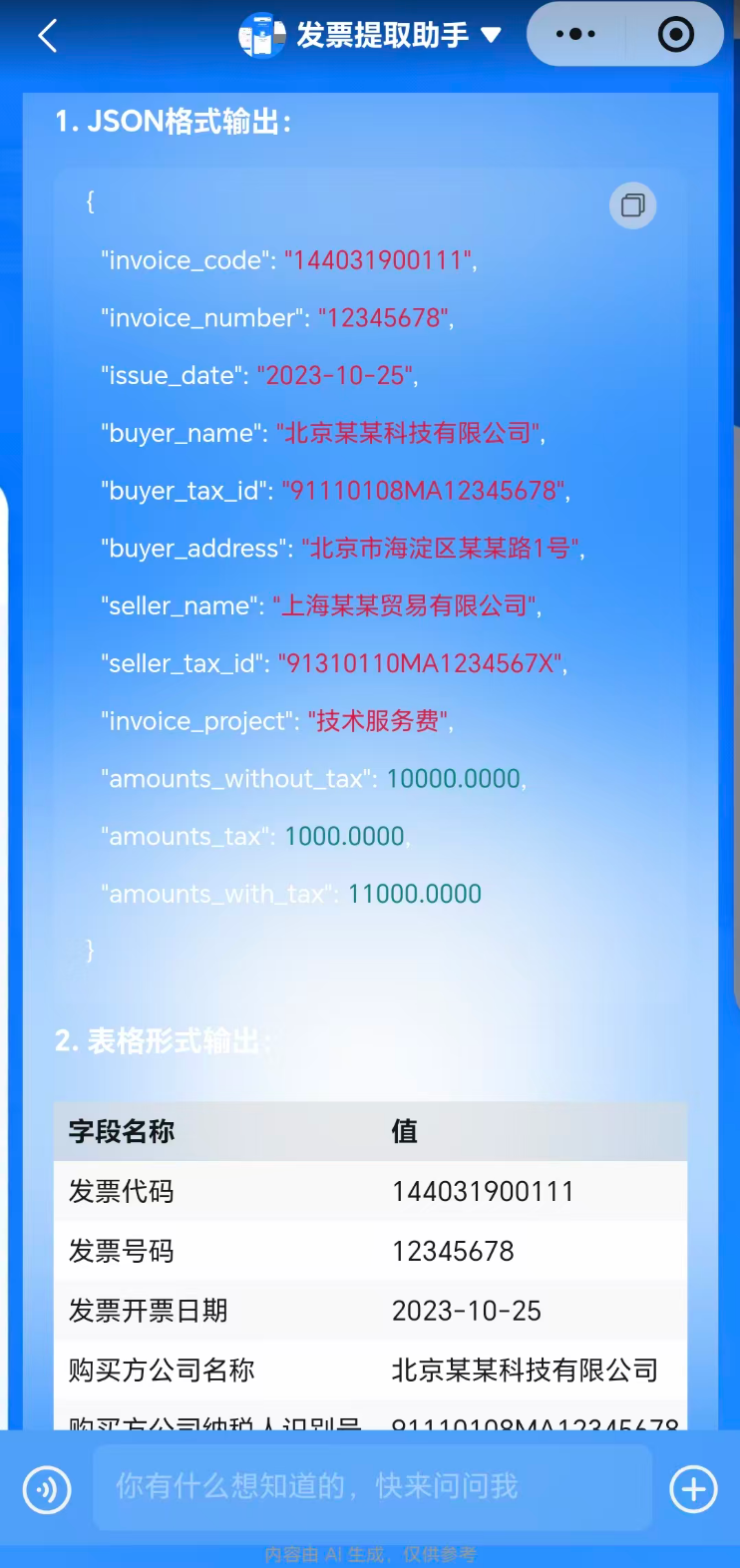 - 使用门槛低:财务人员无需安装新APP,在熟悉的微信环境中就能完成发票提取