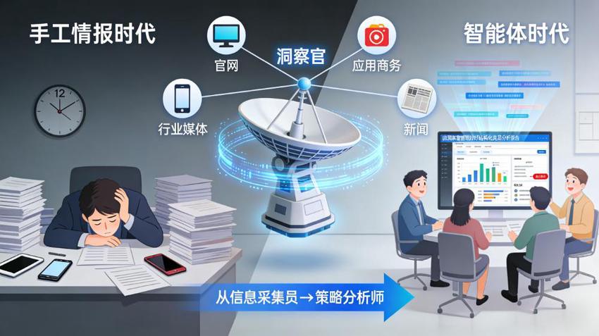 这不是电影里的商业谍战,这是无数市场、产品、战略团队每天都在经历的“日常苦役”。信息就散落在那儿,但把它们捡起来、拼起来、看出门道来的过程,耗尽了团队的精力。更可怕的是,当你埋头整理上周数据时,对手可能这周一早就发布了一个颠覆性的新功能。