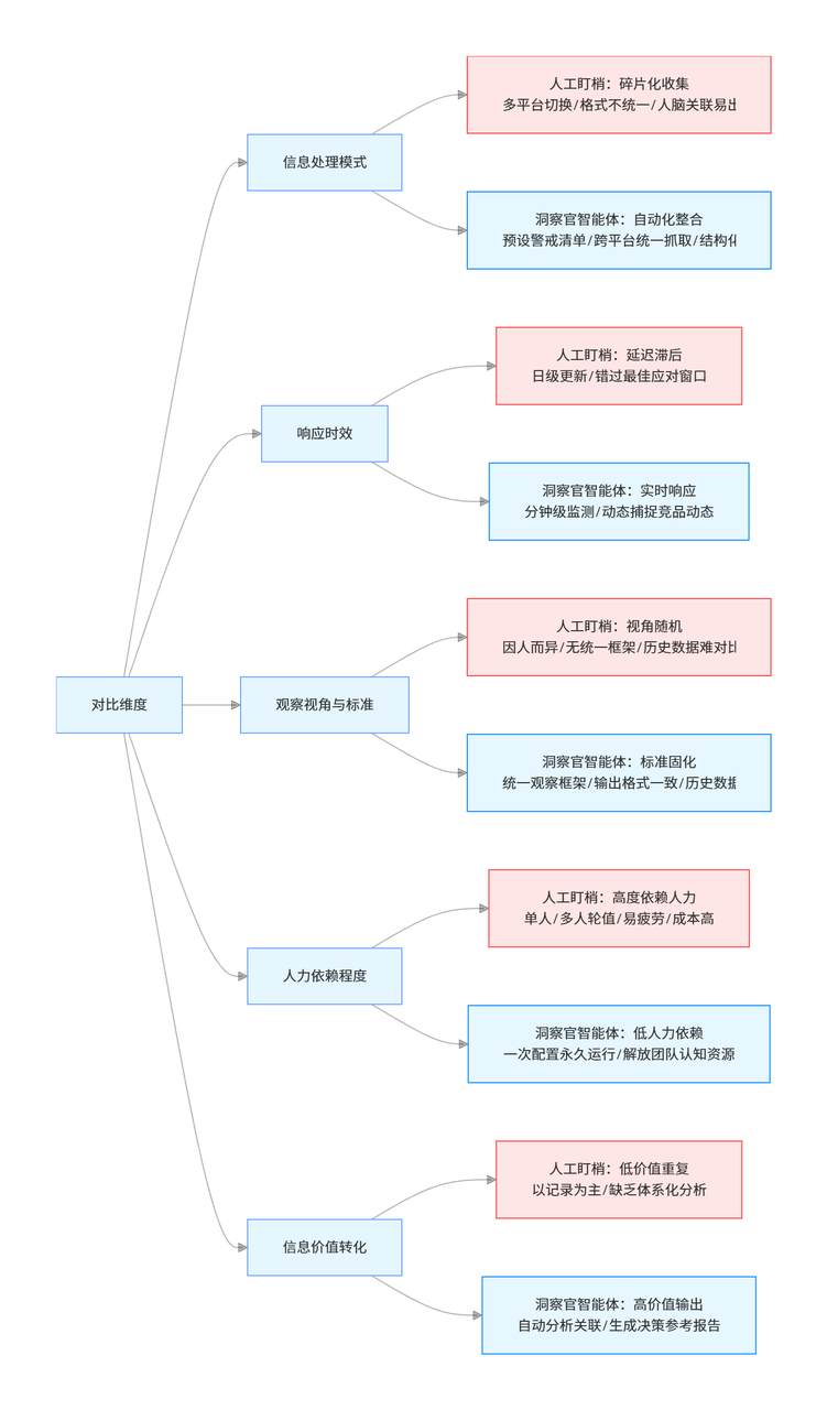 你可能会说:监控竞品,不就是派个人每天看看吗?用得着专门做个“智能体”?
