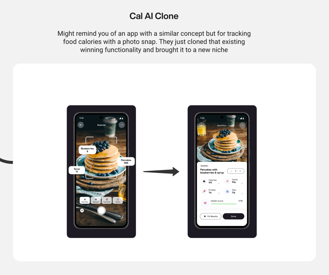 这让我想到了 Cal AI 的模式。Cal AI 是一个营养追踪应用,你拍一张食物的照片,它就告诉你这份食物的卡路里、蛋白质等营养成分。同样的,如果你把照片上传到 ChatGPT,问同样的问题,你也能得到几乎相同的答案。但 Cal AI 成功的原因在于,它提供了一个专门的环境,让追踪变得更方便,添加了一些额外功能,让整个体验更流畅。