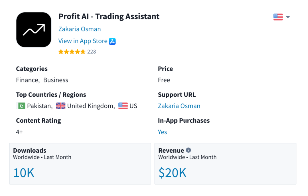 这个案例来自增长营销专家 Stef 的分享。他专门研究和帮助 SaaS 应用成长。他最近拆解了一个叫 Profit AI 的应用,这个应用的创始人 Sakira Osman 用了一个极其简单却有效的策略:把营养追踪应用 Cal AI 的模式,直接套用到金融交易领域。结果呢?在不到4个月的时间里,这个基础的 ChatGPT 包装应用就达到了每月4万美元以上的经常性收入。我听完 Sebastian 的分析后,最大的感受是:AI 时代的创业逻辑已经彻底变了,那些我们以为的护城河可能根本不存在,而真正的机会藏在我们想不到的地方。