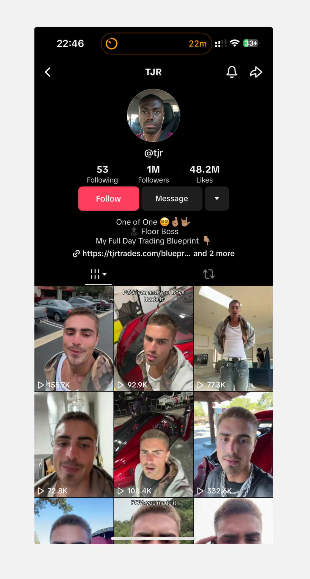 我特别认同 Sebastian 对交易网红 TGR 的分析。这个人通过在 TikTok 和 Instagram 上分享自己的交易过程,几乎单枪匹马地让整整一代年轻人对交易上瘾。他不仅自己发布内容,还有大量的二次创作者在各个平台转发他的片段。这种病毒式传播让交易从一个小众的金融活动变成了年轻人文化的一部分。