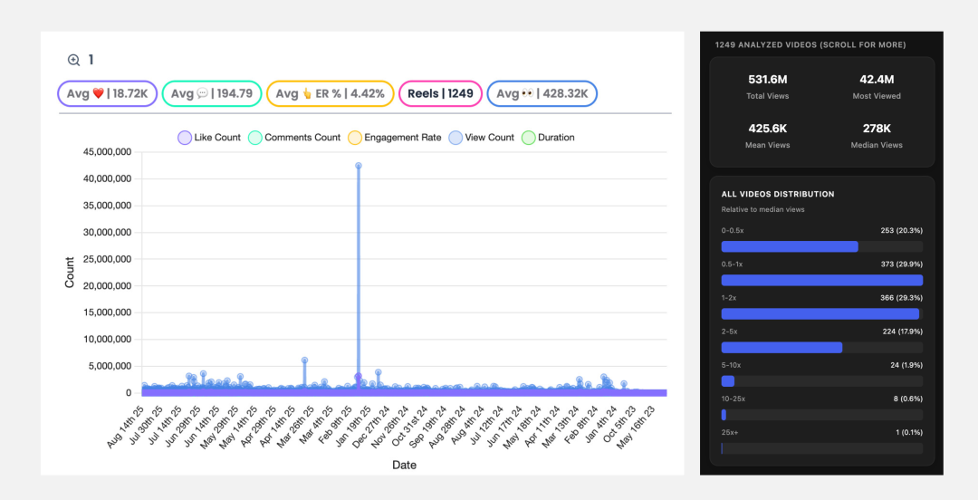 他们也有 Instagram 账号,但只发了大约24个视频就停了,因为 TikTok 效果更好。他们的 TikTok 总共获得了600万次观看,观看次数最多的视频有140万次,平均每个视频约2.5万次观看。就是这么简单。