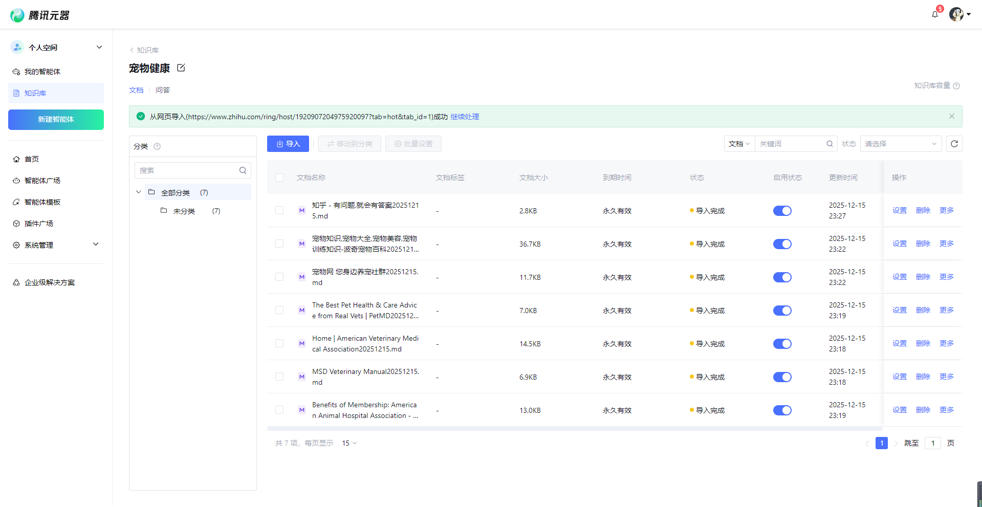 不同于传统AI,腾讯元器支持上传自定义的资料作为知识库。这意味着,我可以将自己常用的储备资料以及业界专业的权威资料均上传到知识库中,让“宠爱”给出每一个建议都更精准、更有科学依据,值得信赖。