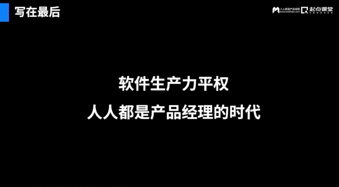 “在未来,软件生产力提升之后,描述清楚需求才是最重要的能力。这刚好是产品经理的看家本领。所以在未来,才是真正的’人人都是产品经理’——这不是口号。”
