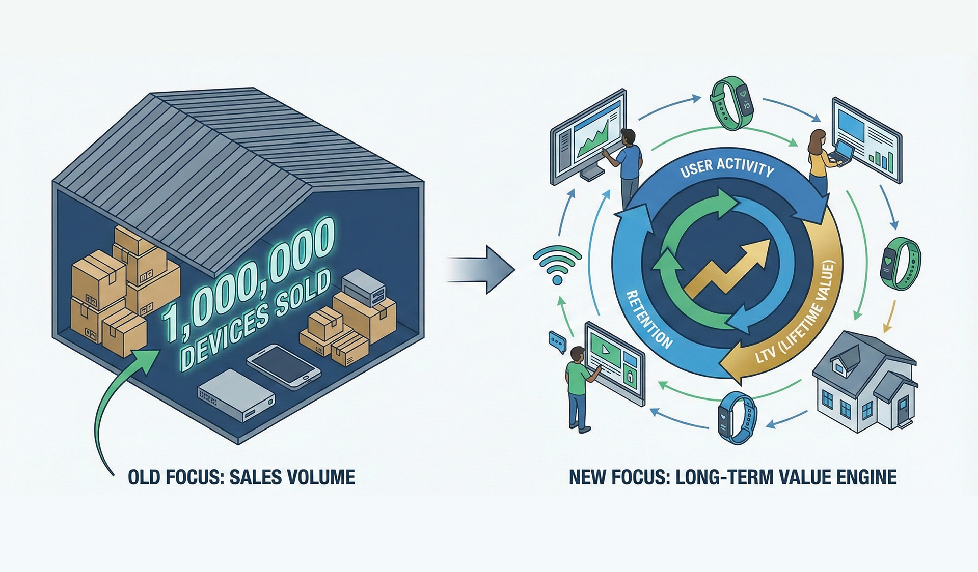 传统的硬件公司,我们通常称之为“一锤子买卖”。它的商业模式很简单,就是把设备卖给你,交易就结束了。公司赚的就是硬件本身的利润。这种模式下,市场衡量一个公司价值的核心指标,就是“出货量”。今年卖了100万台,明年能不能卖到200万台?增长的压力全部压在不断地开拓新用户上。