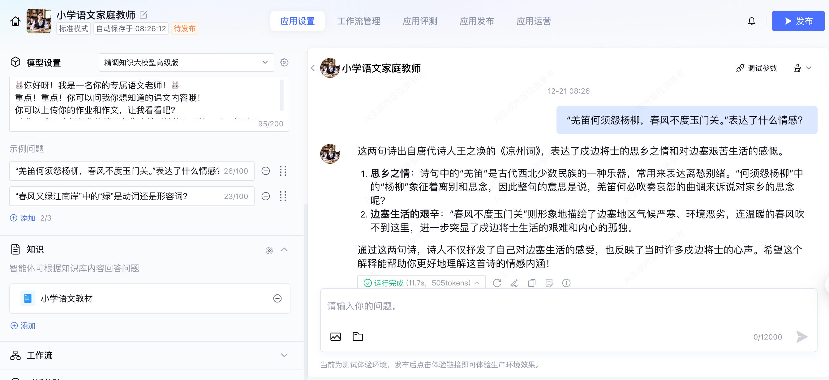 准确性测试: 问它一个冷门的生字笔顺,或者教材里的注释,看它是否引用了知识库。