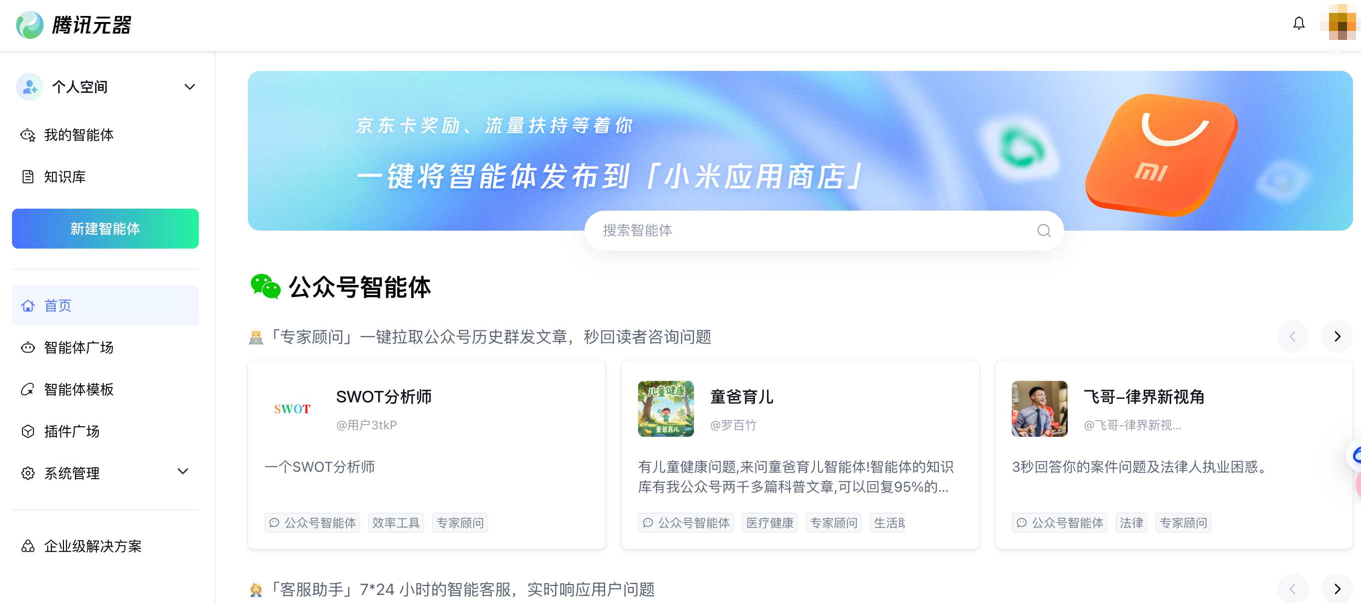 打开腾讯元器官网(https://yuanqi.tencent.com/),微信扫码登录