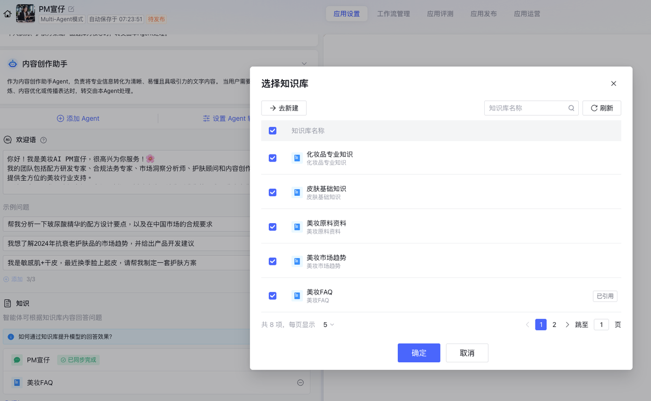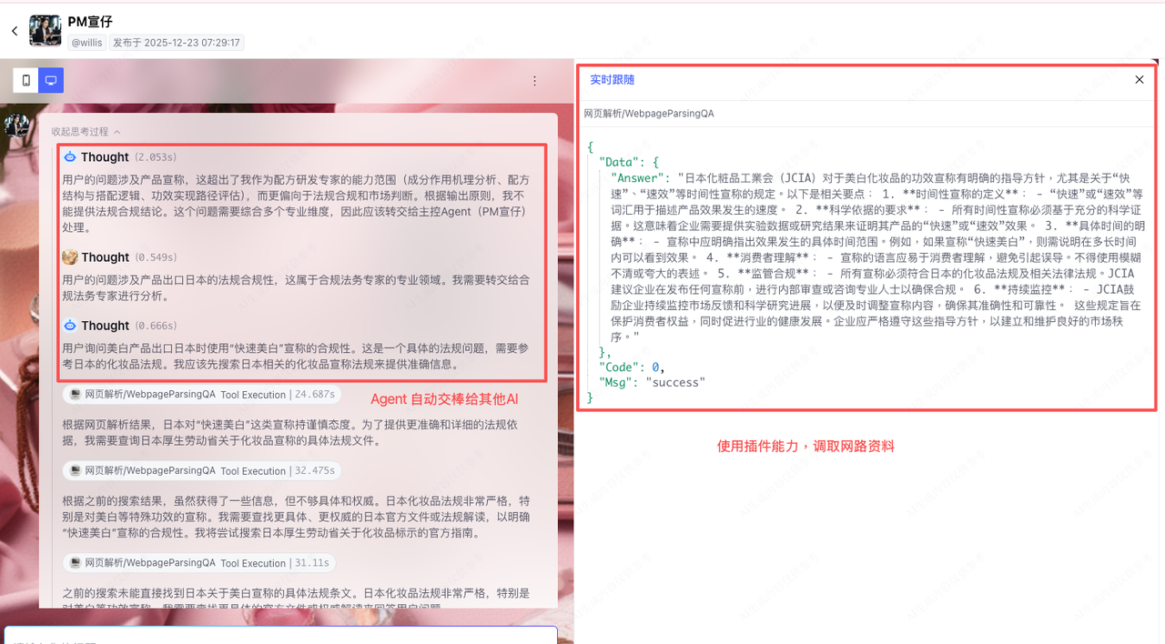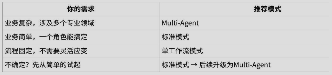 我的选择:作为美妆PM,我需要同时处理成分、法规、市场、内容等多个领域的问题,所以毫不犹豫选择了 Multi-Agent模式。