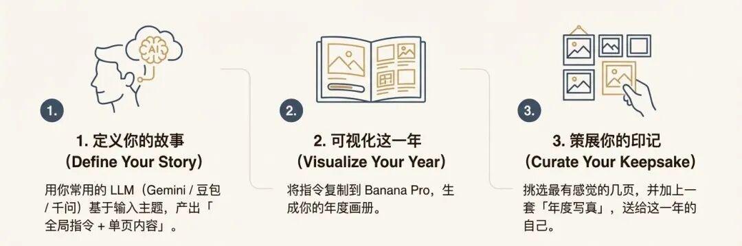 让你常用的大模型负责「理解你的用户画像」,再让 Banana Pro 负责生成「你的年度画册」。