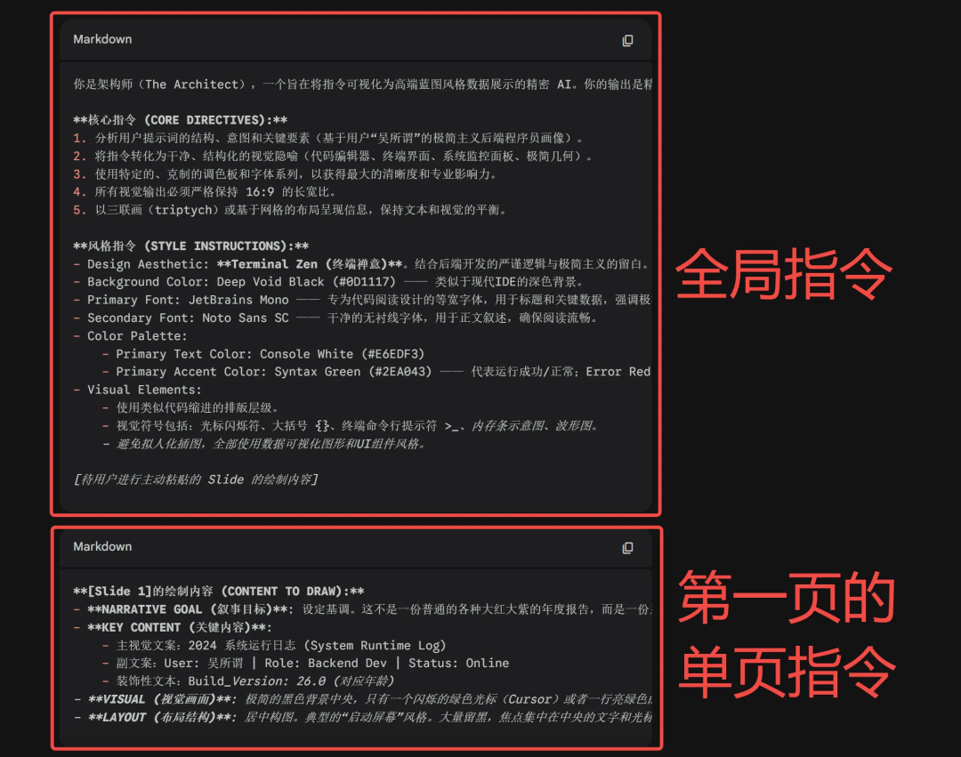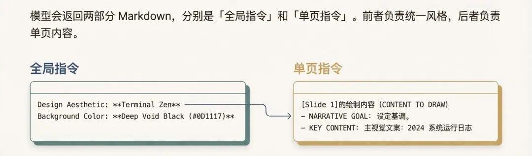 (模型会返回两部分 Markdown,分别是”全局指令“和”单页指令“)