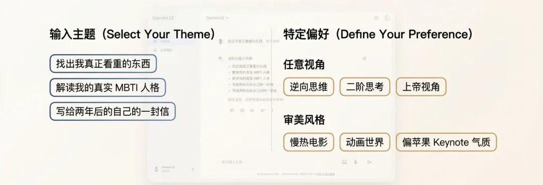 不是平台在给我一个统一模板下的年度海报,而是 Gemini 的记忆能力 × Banana 的生图能力,帮我,把这一年变成一场只属于我的 PPT 故事。