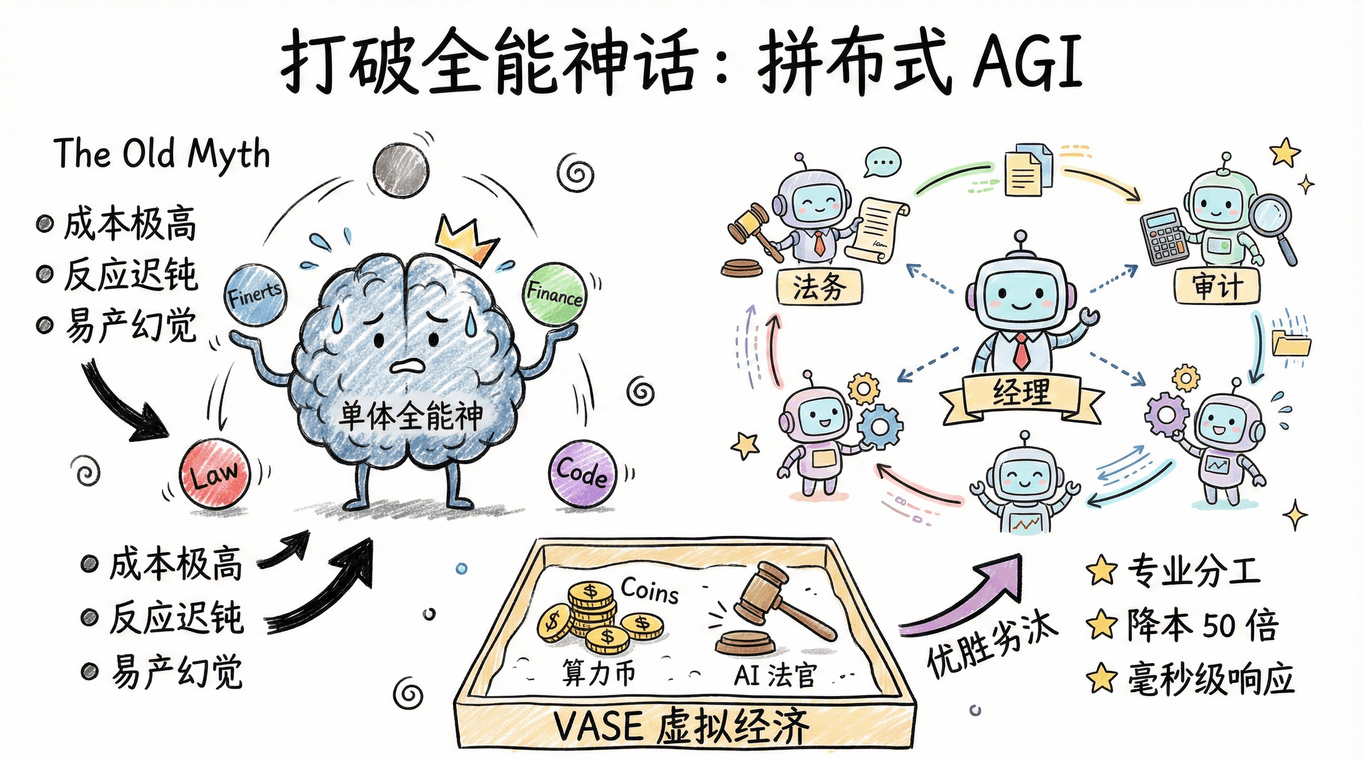如果把拼布式AGI看作一款产品,其核心逻辑已经发生根本转变:我们不再追求“训练一个最强的大脑”,而是致力于“治理一个高效的网络”。