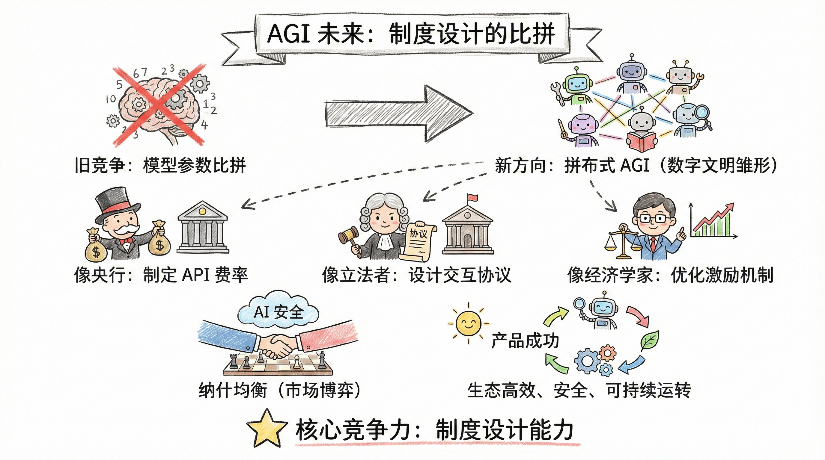 在这个时代,AI安全不再是代码里的一行断言,而是市场博弈后的纳什均衡;AI产品的成功,也不再取决于模型有多强,而是取决于设计的制度能否让智能体生态实现高效、安全、可持续的运转。拼布式AGI的大幕已经拉开,而制度设计能力,将成为未来AI行业的核心竞争力。