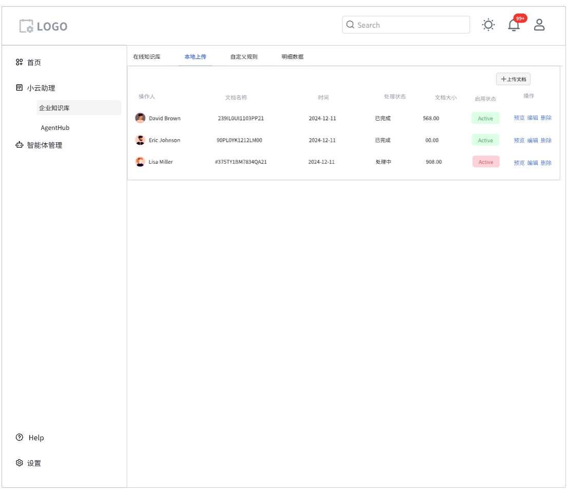 支持版本控制,新增/修改文档自动触发增量更新,历史版本可追溯;支持人工审核机制,确保知识合规性。