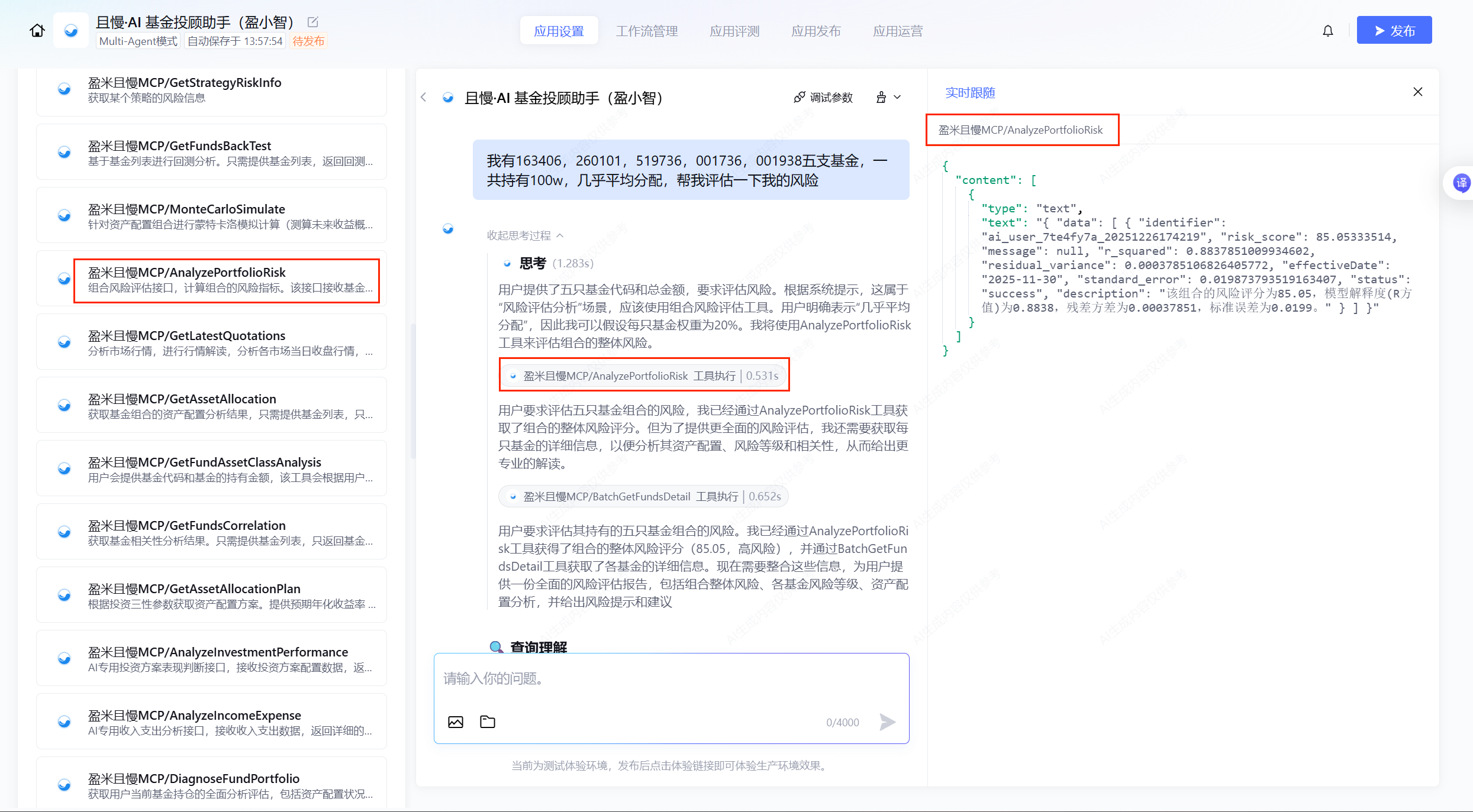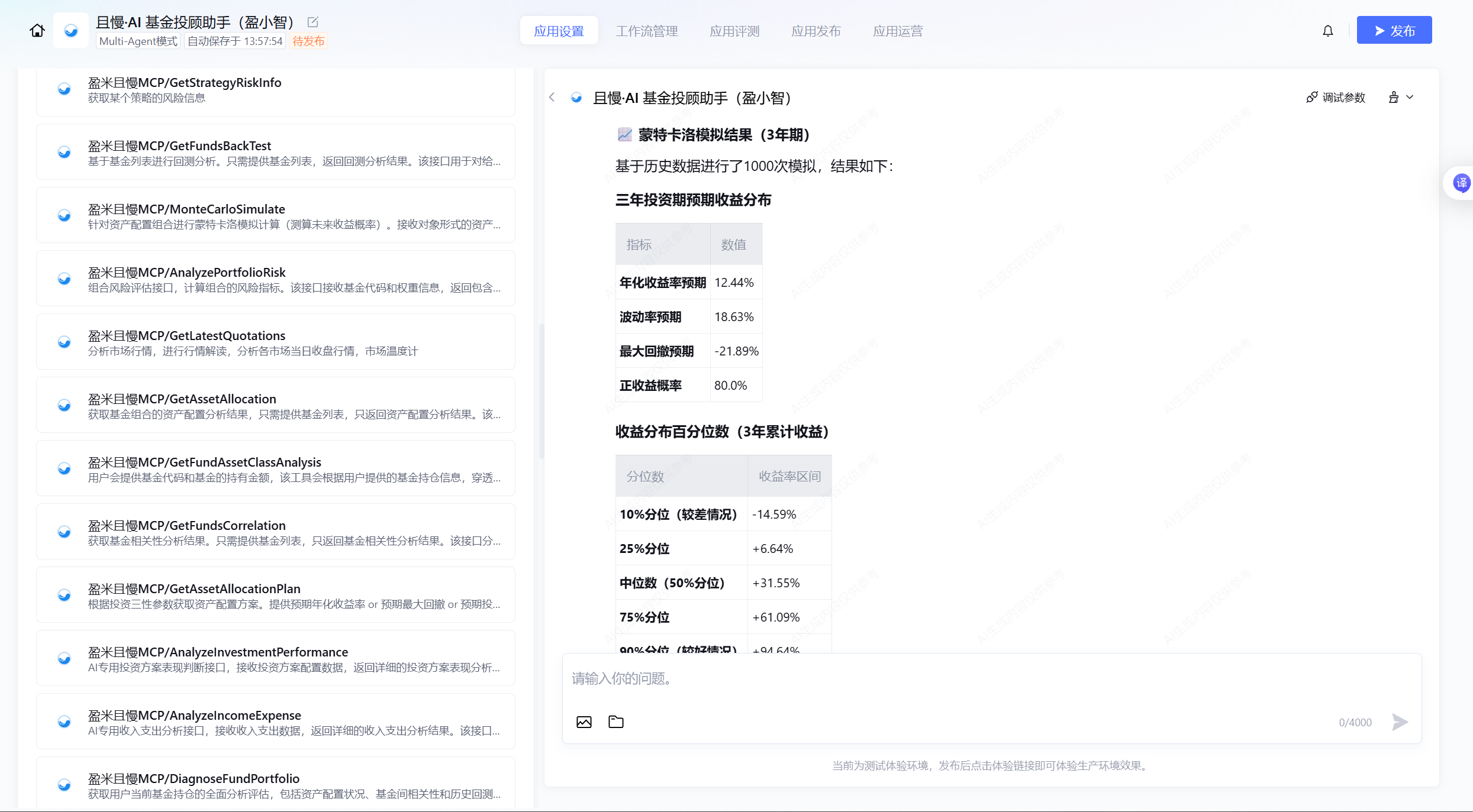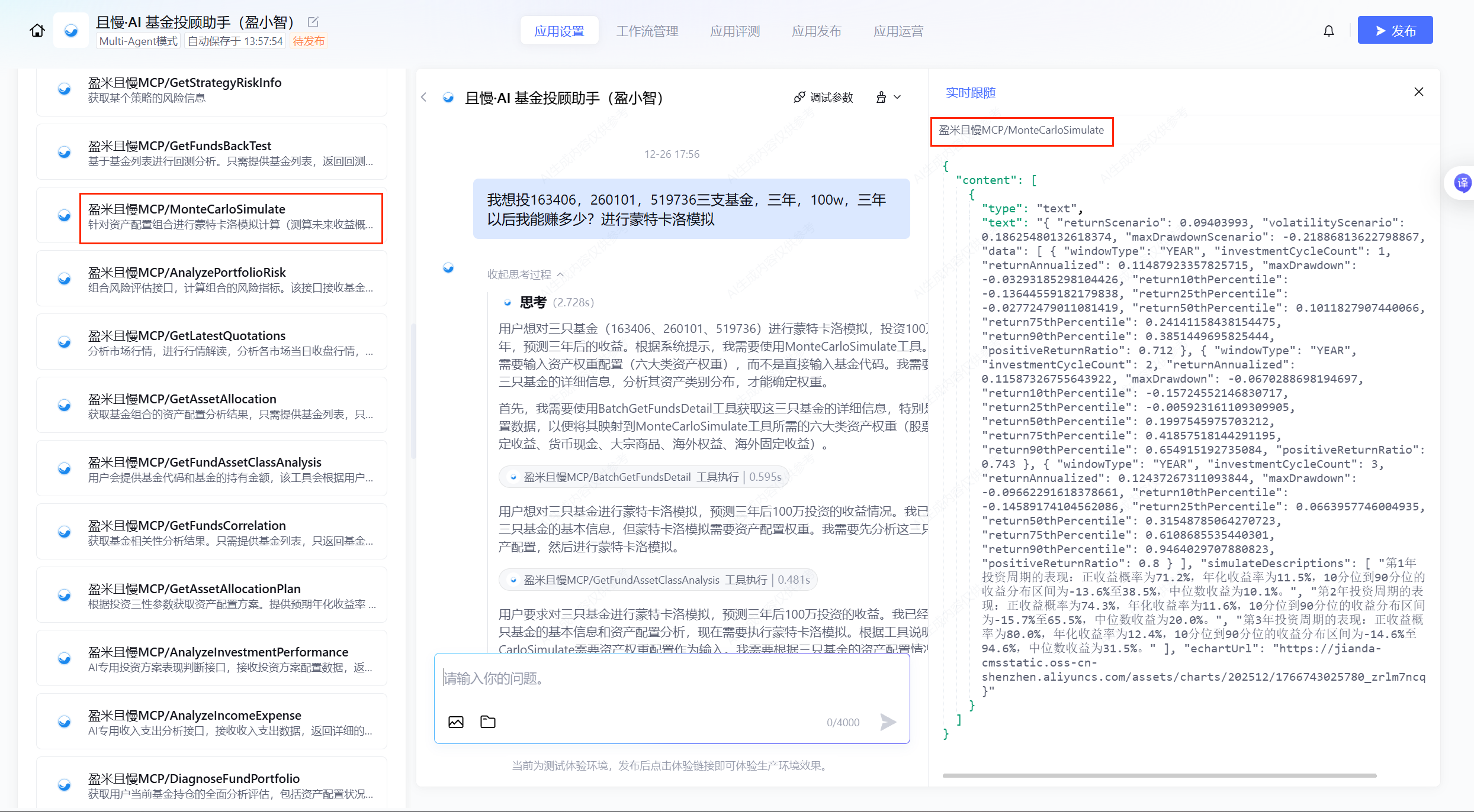通过 MCP,我们将盈米且慢沉淀多年的投顾能力(Know-How),标准化为大模型可调用的“原子能力”。我不再试图教会 AI 做蒙特卡洛模拟,而是通过 MCP协议,把这一整套成熟的金融工程能力变成智能体随手可用的“插件”。
