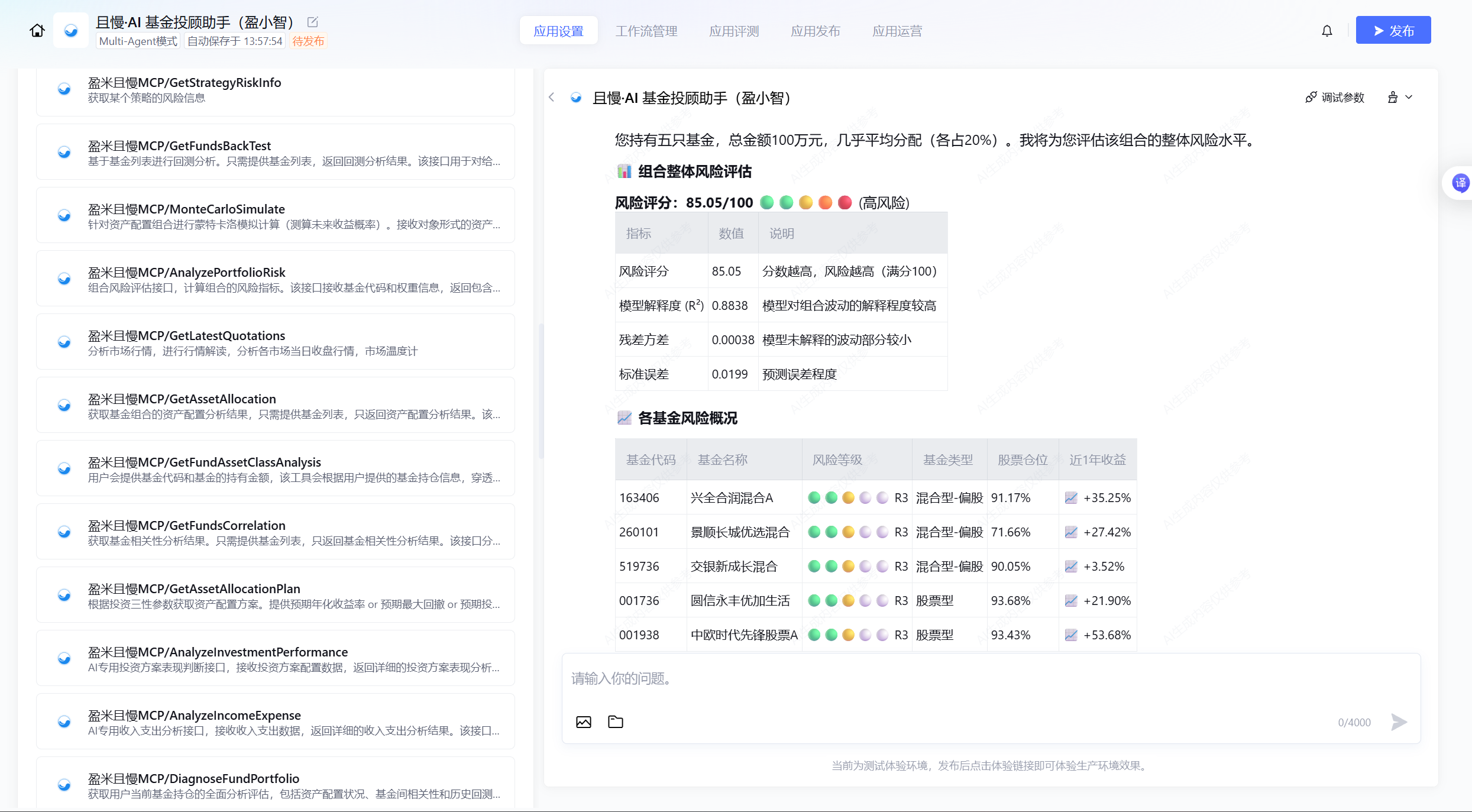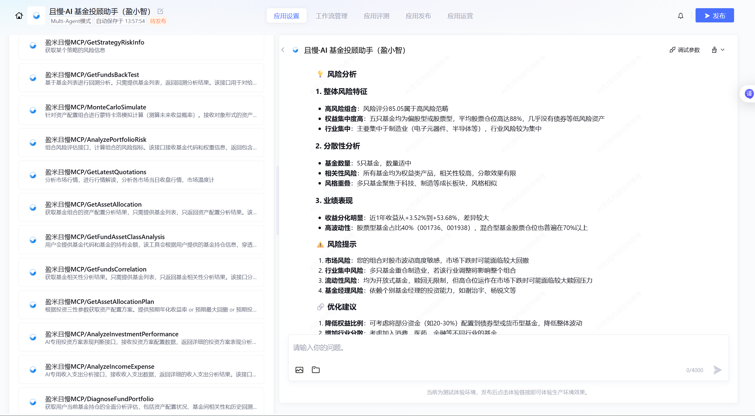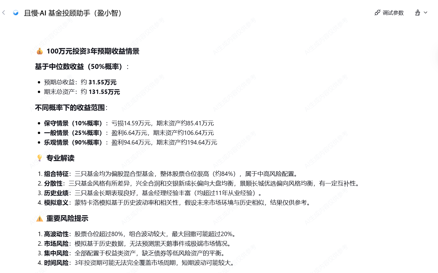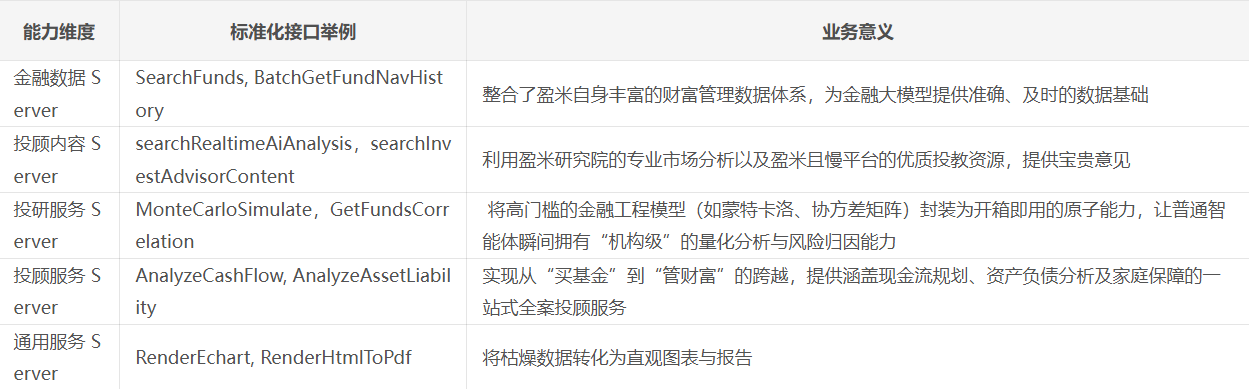 通过 MCP,我们将盈米且慢沉淀多年的投顾能力(Know-How),标准化为大模型可调用的“原子能力”。我不再试图教会 AI 做蒙特卡洛模拟,而是通过 MCP协议,把这一整套成熟的金融工程能力变成智能体随手可用的“插件”。