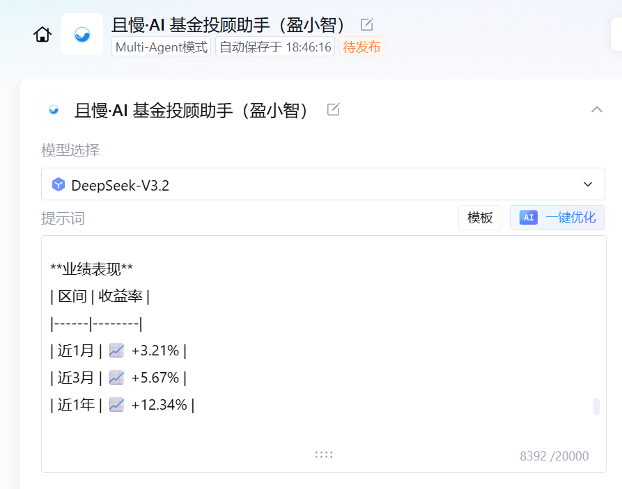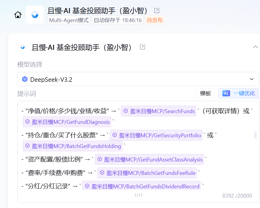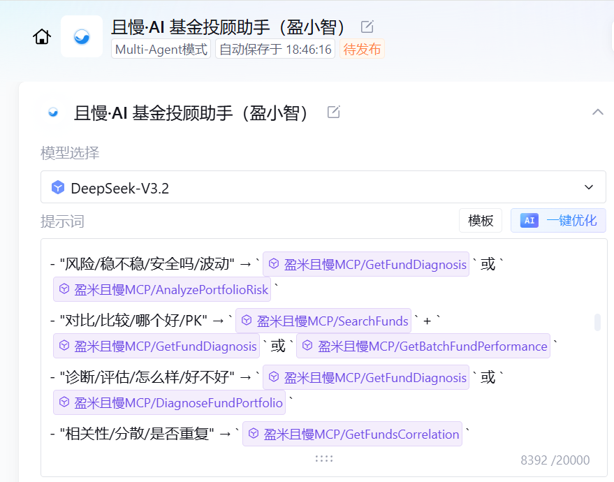 以下展示的不仅仅是功能,更是业务逻辑在智能体中的具象化。