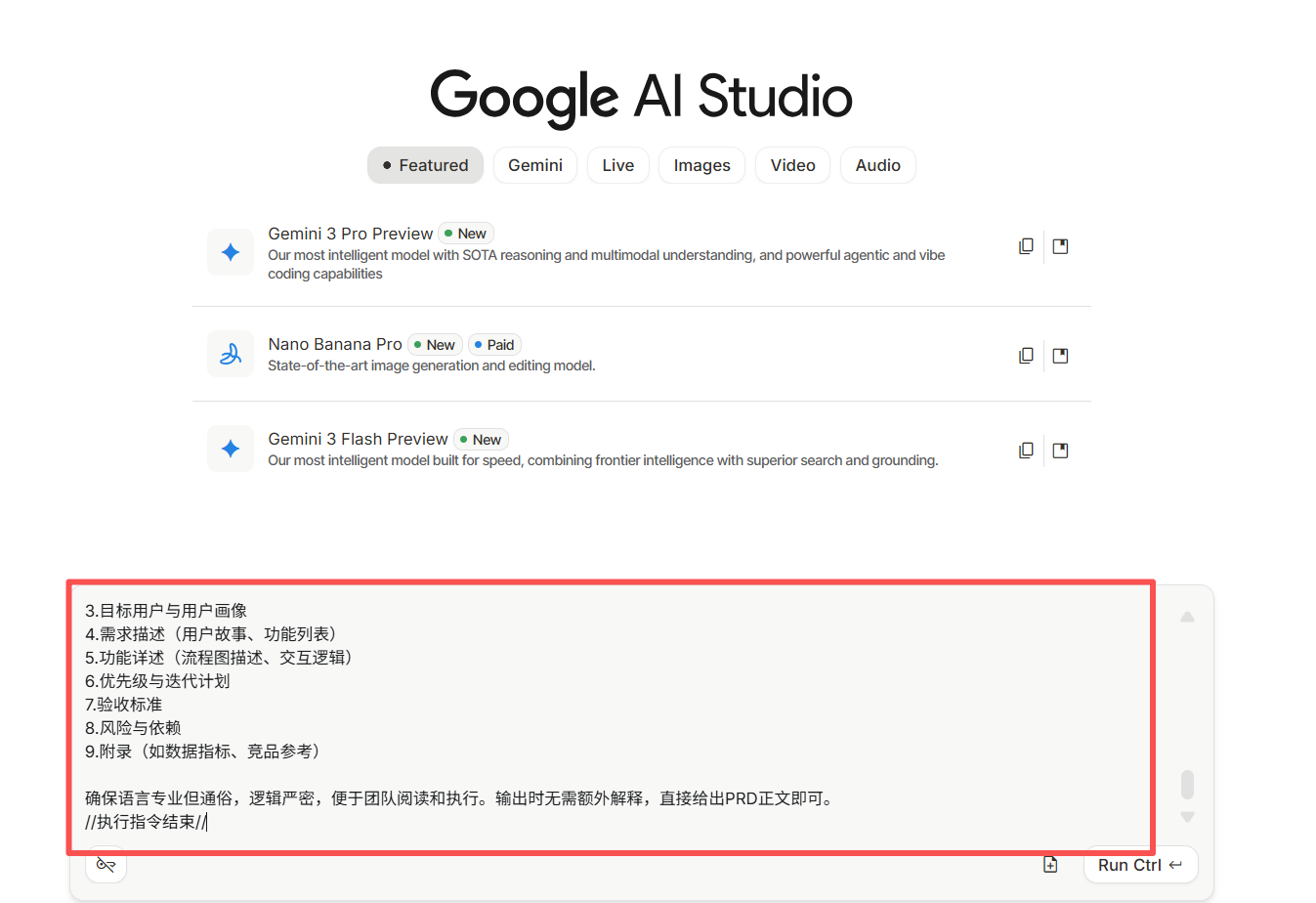 1.打开一个你选择的AI模型(gemini2.5pro)