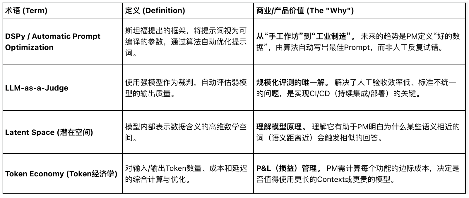 本词汇表涵盖了从基础概念到2025年前沿工程术语,是PM与算法工程师对话的基础。