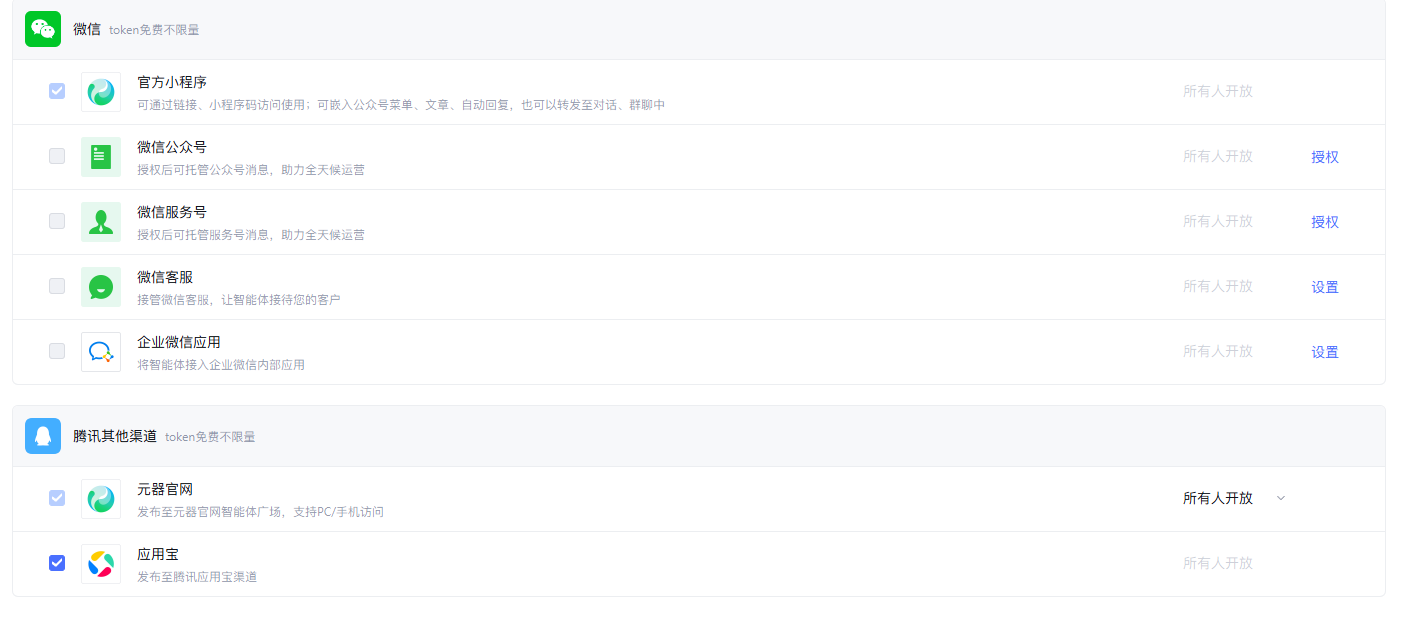 发布渠道:选择微信小程序(元宝)+ 公众号等多渠道发布,用户在微信生态内搜索“全年龄段英语练习助手”即可使用你制作好的智能体,无需下载 APP,符合学习场景的碎片化需求。