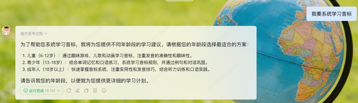 - 需工具支持(如文本翻译、语音评测),自动触发对应插件,整合结果生成个性化练习方案。