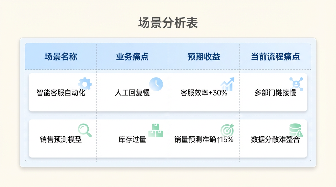 对于高价值场景,可以制定MVP试点,在小范围内验证效果,避免大规模投入后发现不符预期。