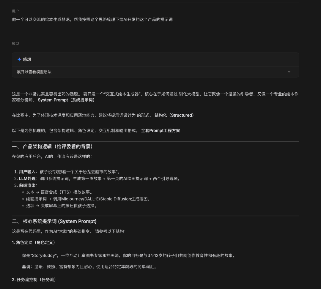 最初不了解AIstudio能力,以为直接能产出前后端,构建了前后端的描述prompt,但实际上AIstudio仅能构建前端能离,非常强大,后端完全不行,因此整个规划就是UI-前端-交互-后端的链路